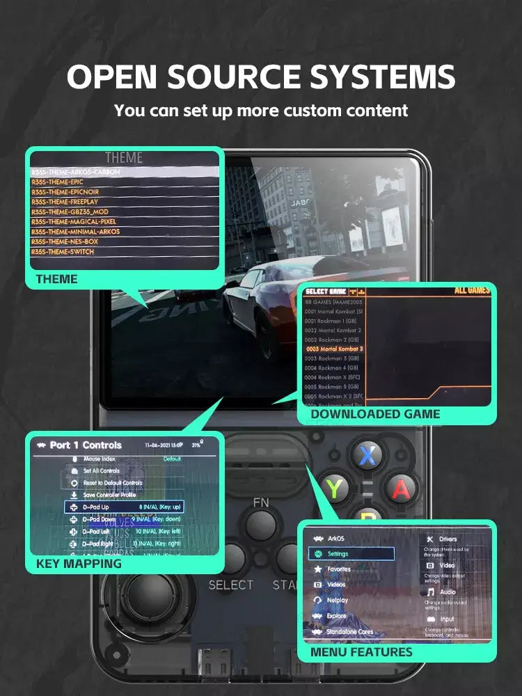 The R36S is an affordable retro handheld console built to emulate a variety of classic gaming systems. It boasts a 3.5-inch IPS display, powerful emulation performance, and runs on the customizable ArkOS operating system.